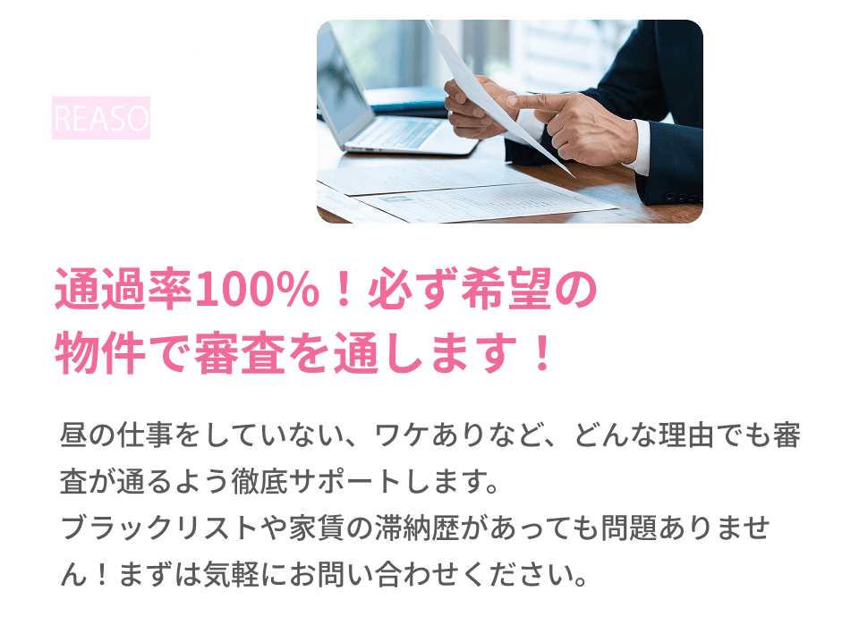 当社はこれまで多くの方のサポートを行い、審査通過率100%という数字を出していますので安心してお問い合わせください。